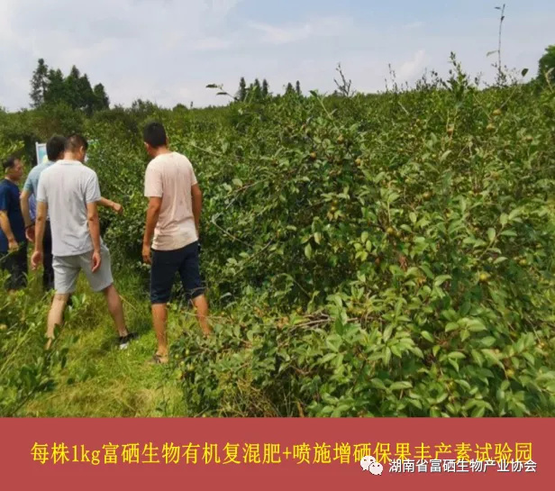 本項(xiàng)目實(shí)施油茶園,每株施用1kg富硒生物有機(jī)復(fù)混肥+噴施增硒保果豐產(chǎn)素。從現(xiàn)場(chǎng)觀察比較:試驗(yàn)區(qū)枝葉茂密,葉色青綠、茶果繁多;對(duì)照區(qū)長(zhǎng)勢(shì)不旺,枝葉稀疏,葉片明顯黃綠,茶果數(shù)量偏少。從單株觀察,試驗(yàn)株果密、果多、果大、大小均勻、崎型果少。對(duì)照株茶果稀疏、果小。試驗(yàn)區(qū)與對(duì)照區(qū)差異顯著。油茶種植大戶徐清桃說(shuō):“施了增硒保果肥的,結(jié)得太好了,你看這個(gè)茶子,枝都快壓斷了,怎么得了,真是結(jié)得太好了”。