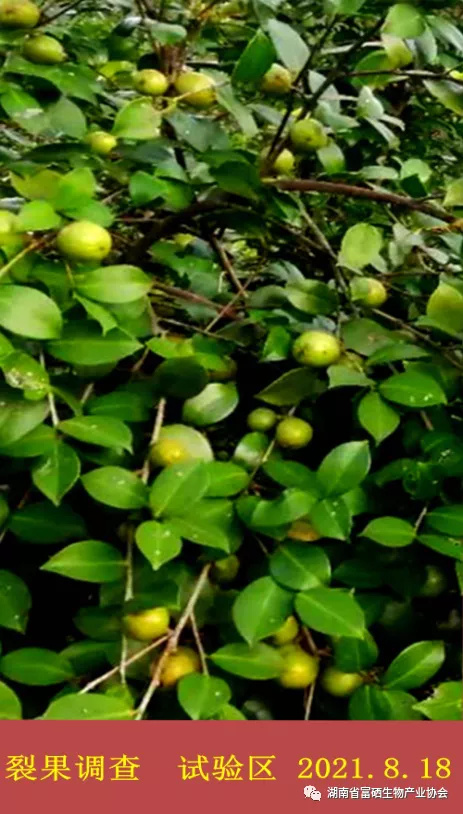 2021年7月5日至16日,久晴不雨;7月17至24日久雨不晴, 2021年8月18日調(diào)查中發(fā)現(xiàn)試驗(yàn)區(qū)(徐清桃的油茶園)裂果僅為3%;對(duì)照株裂果嚴(yán)重,裂果率高達(dá)23%。