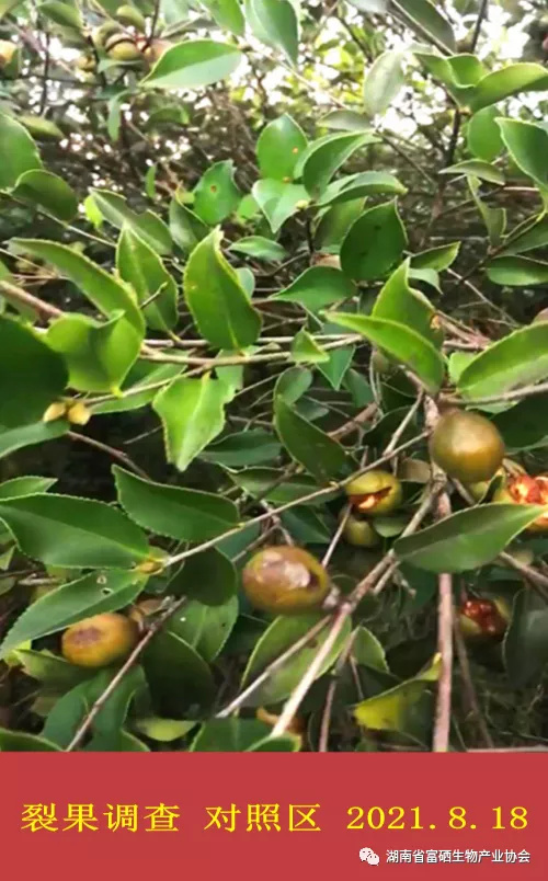 截止8月底,在生理落果始期(春梢萌發(fā)期,約3月上旬)與茶果迅速膨大中后期(8月上中旬)的已完成兩次葉面噴施。計劃在茶果迅速膨大期至采收前1個月(寒露籽類9月上旬,霜降籽類9月中旬)噴施1次增硒保果豐產素。計劃在10月15日左右邀請相關領導和聘請專家測產驗收;并抽樣送權威檢測部門檢測茶油的硒含量。對合格達標的茶籽,將由湖南省康多利油脂有限公司和湖南泥頭山油茶開發(fā)有限公司全部加價20%收購。