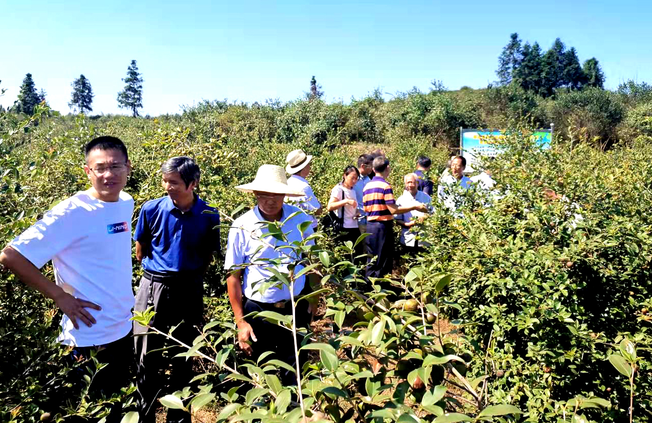 2021年9月22日,牛年的中秋如犟牛,火爆的秋陽(yáng)似火燒。專家不知寒與熱,汗流滿面寫春秋。常德市林業(yè)局調(diào)研員、高級(jí)工程師沈習(xí)華率領(lǐng)常德市著名油茶專家陳躍先,常德市林科所副所長(zhǎng)、工程師歐陽(yáng)勝祥,專家朱慶妮,常德市林業(yè)局造林科李艷,桃源縣林業(yè)局種苗站長(zhǎng)劉繼軍,造林股長(zhǎng)傅金洲,科技推廣站長(zhǎng)陳紅敏等一行,在桃源縣老科協(xié)副會(huì)長(zhǎng)、助調(diào)鐘吉太,桃源縣富硒產(chǎn)品研究所所長(zhǎng)、研究員顏送貴,夷望溪鎮(zhèn)黨委副書董強(qiáng),鎮(zhèn)農(nóng)業(yè)服務(wù)中心主任、農(nóng)藝師李建成,夷望溪鎮(zhèn)馬石居委會(huì)黨支部書記燕建國(guó),副書記郭杰的陪同下,專程調(diào)研考察“油茶增硒保果豐產(chǎn)配套技術(shù)”試驗(yàn)示范項(xiàng)目。桃源電視臺(tái)記者曾敏,項(xiàng)目試驗(yàn)組專家鄭志武、向漢明、秦奇芳,試驗(yàn)基地油茶大戶楊漢清、郭中玉、徐清桃等30多人到現(xiàn)場(chǎng)調(diào)研試驗(yàn)數(shù)據(jù),聽取茶農(nóng)意見,交流認(rèn)識(shí)和體會(huì),聆聽專家的指導(dǎo)。